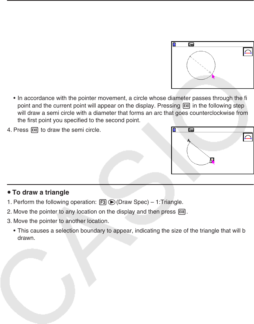 • In accordance with the pointer movement, a circle whose diameter passes through the first