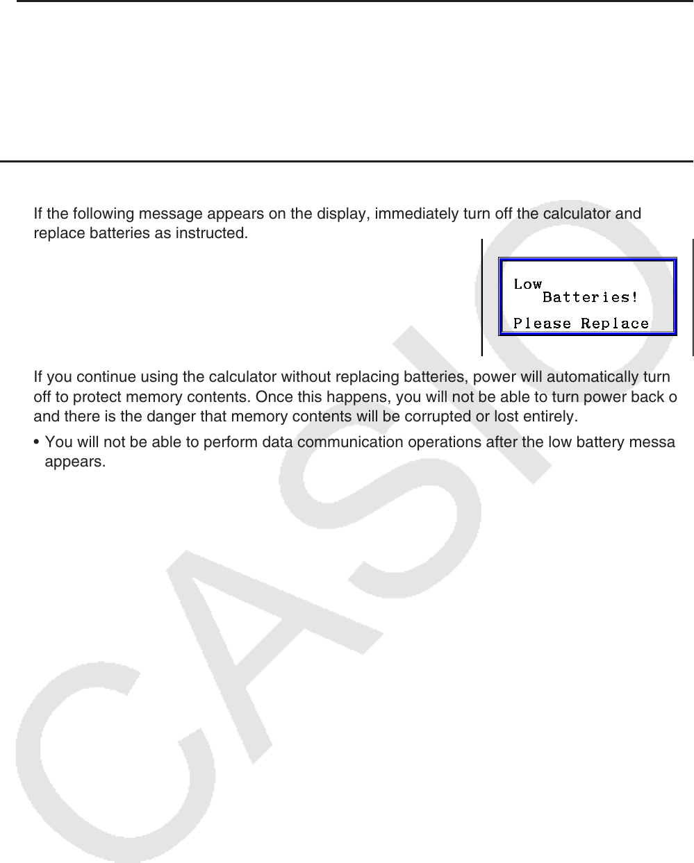 If you continue using the calculator without replacing batteries, power will automatically turn