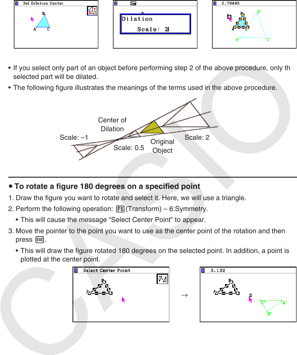 • This will draw the figure rotated 180 degrees on the selected point. In addition, a point is