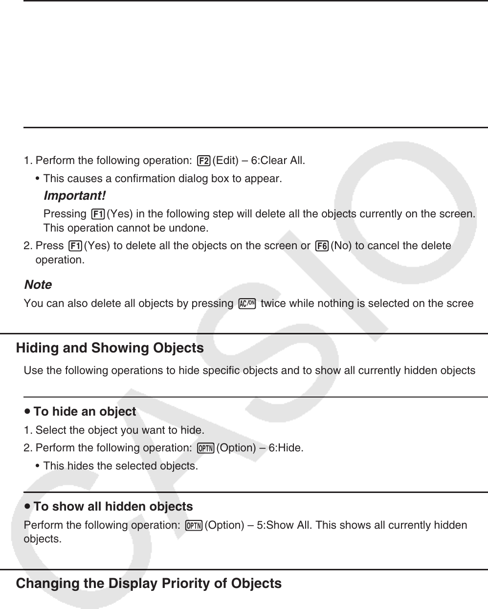 Pressing 1(Yes) in the following step will delete all the objects currently on the screen.