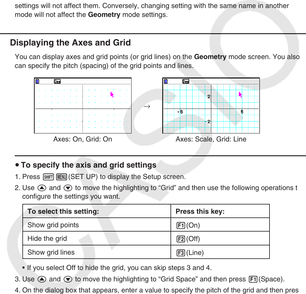 You can display axes and grid points (or grid lines) on the Geometry mode screen. You also
