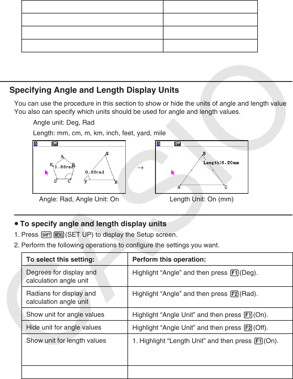 You can use the procedure in this section to show or hide the units of angle and length values.