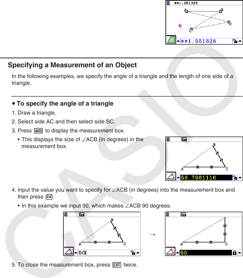 4. Input the value you want to specify for ∠ACB (in degrees) into the measurement box and