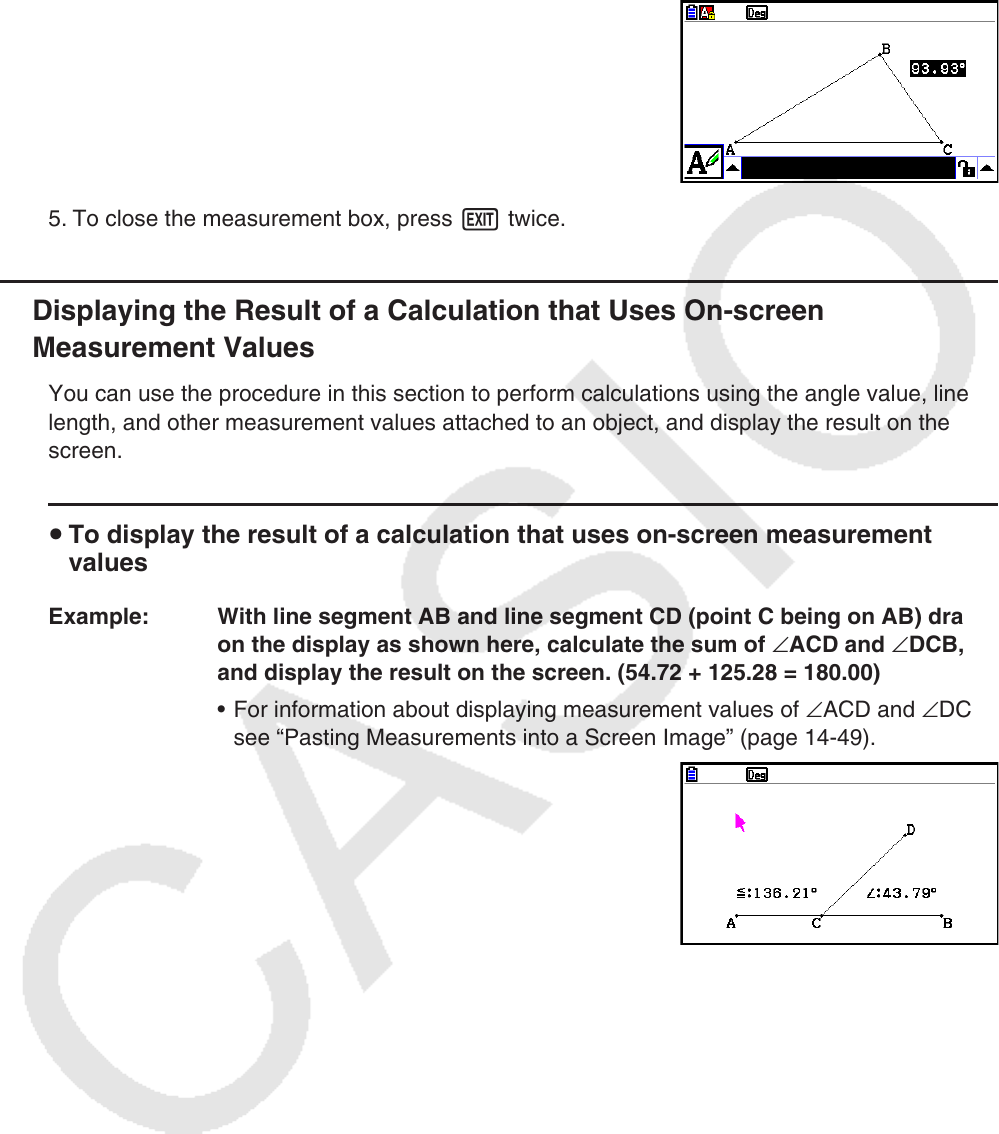 • For information about displaying measurement values of ∠ACD and ∠DCB,
