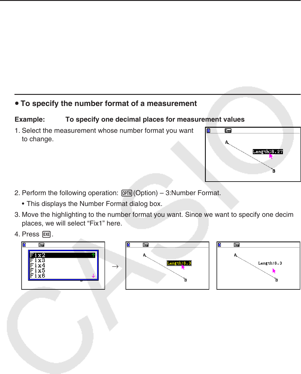 • The initial default number format is “Fix2”. For details about number formats, see “Specifying