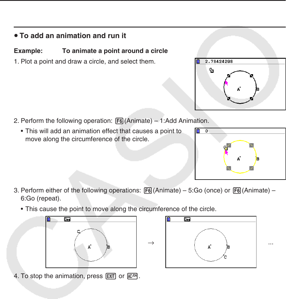 3. Perform either of the following operations: 6(Animate) – 5:Go (once) or 6(Animate) –