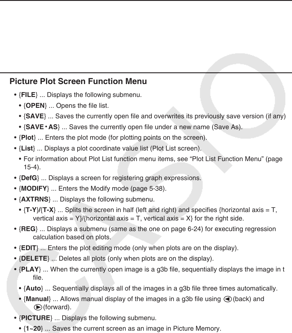 • {List} ... Displays a plot coordinate value list (Plot List screen).