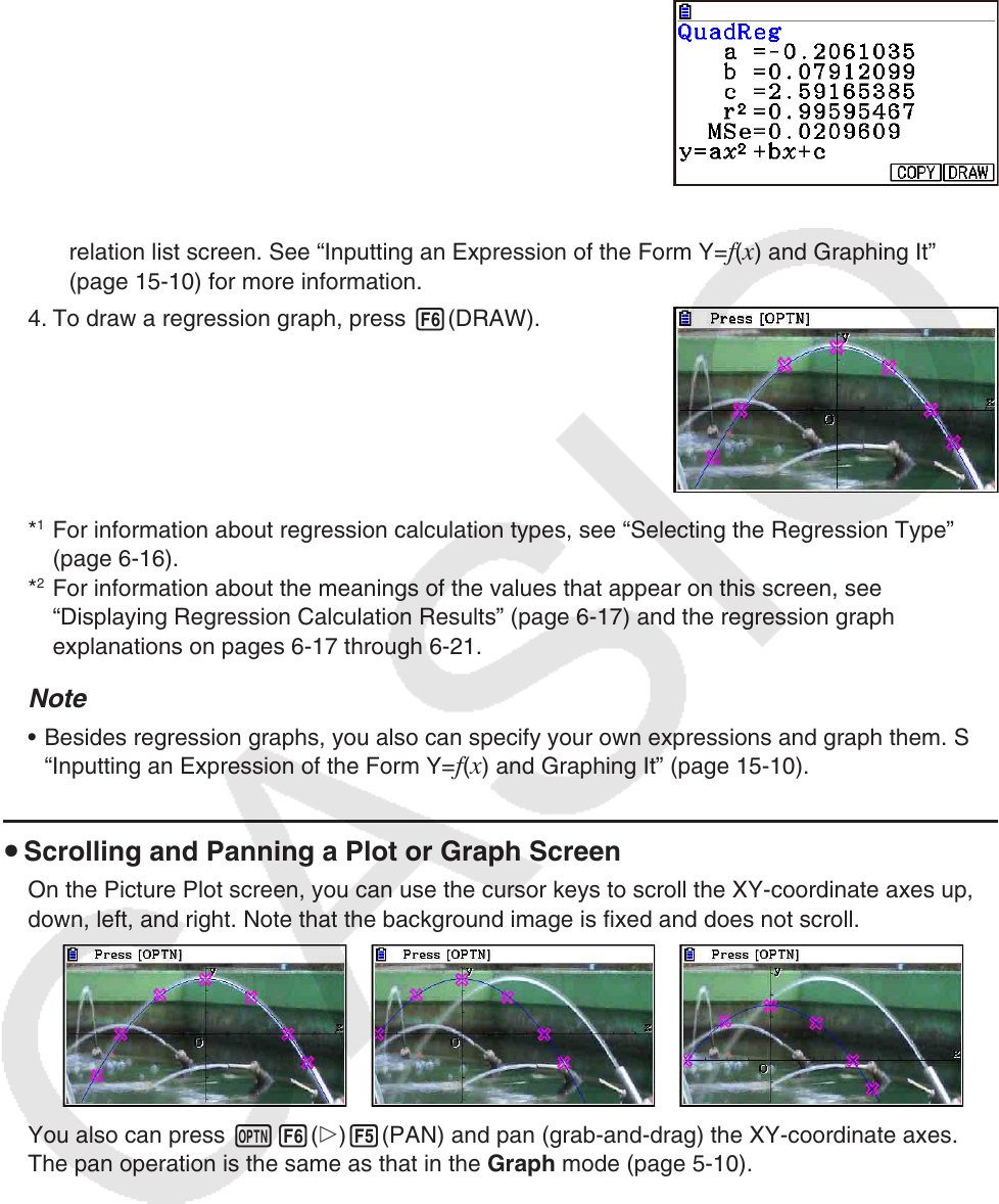 “Displaying Regression Calculation Results” (page 6-17) and the regression graph