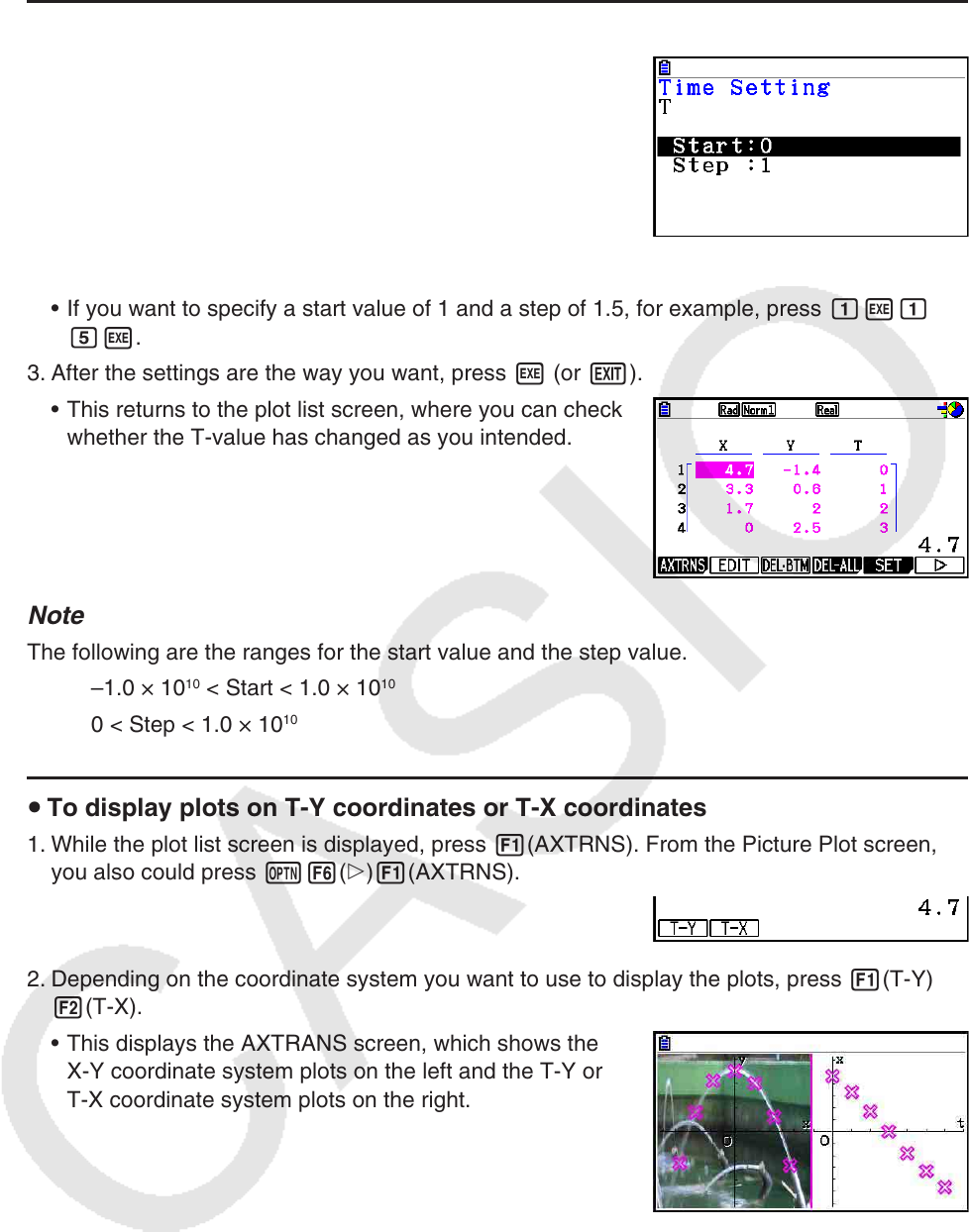 2. Depending on the coordinate system you want to use to display the plots, press 1(T-Y) or