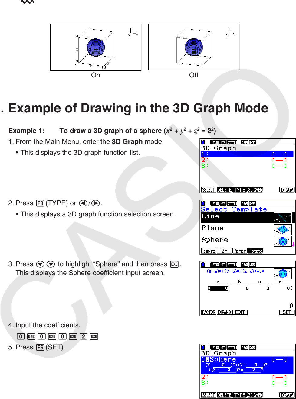 {On}/{Off} ... {show 3D graph screen axis names}/{hide 3D graph screen axis names}