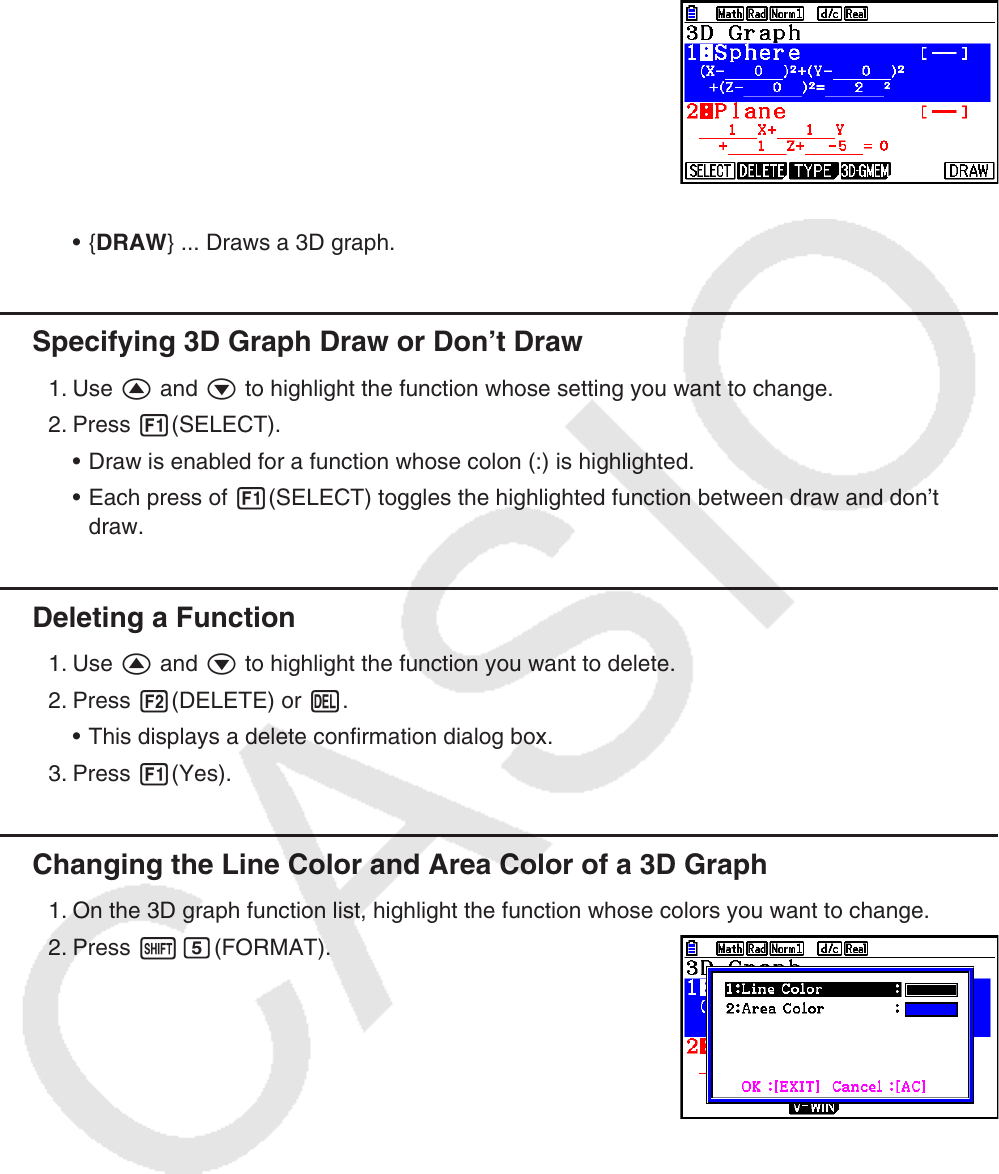 1. On the 3D graph function list, highlight the function whose colors you want to change.