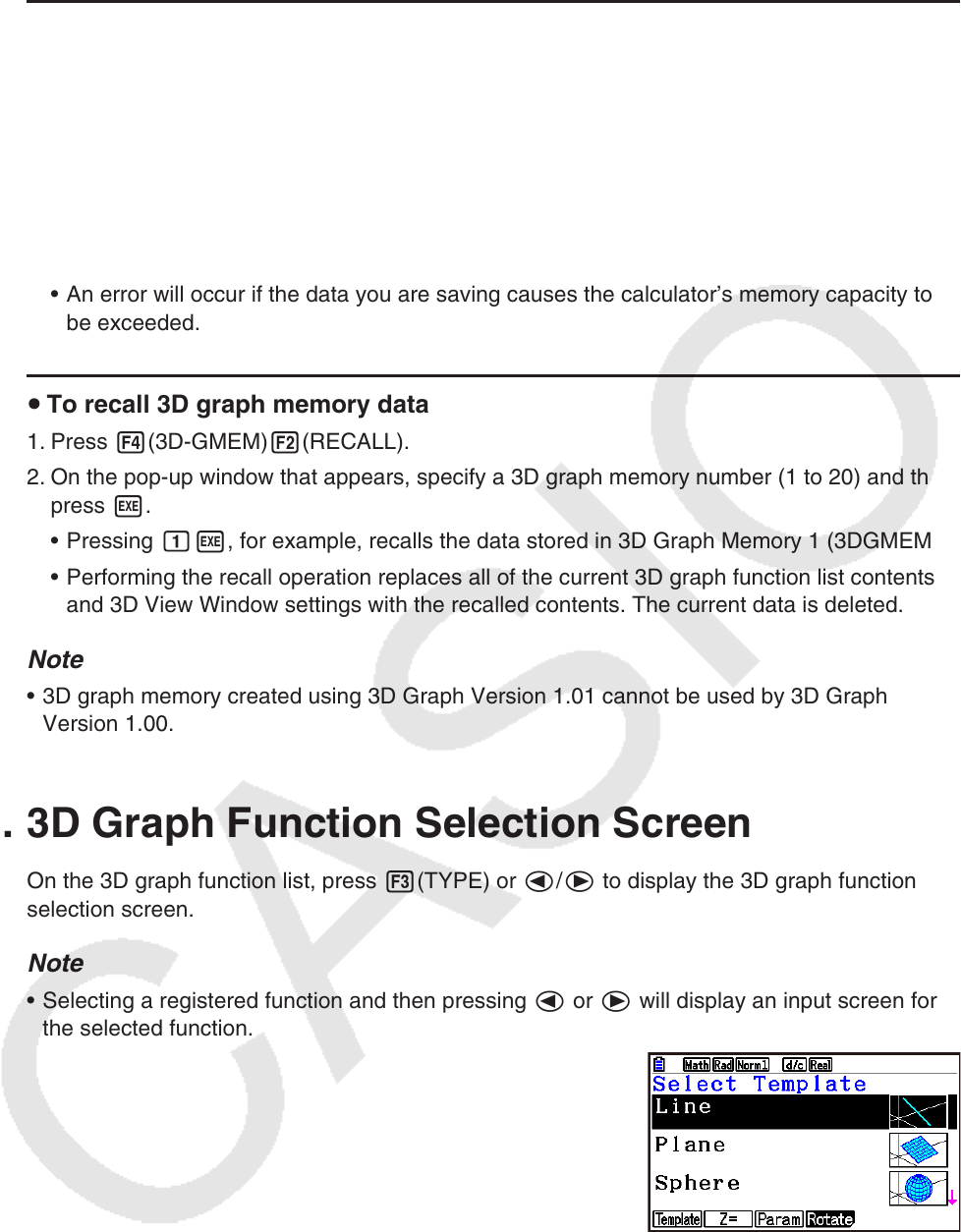 On the 3D graph function list, press 3(TYPE) or d/e to display the 3D graph function