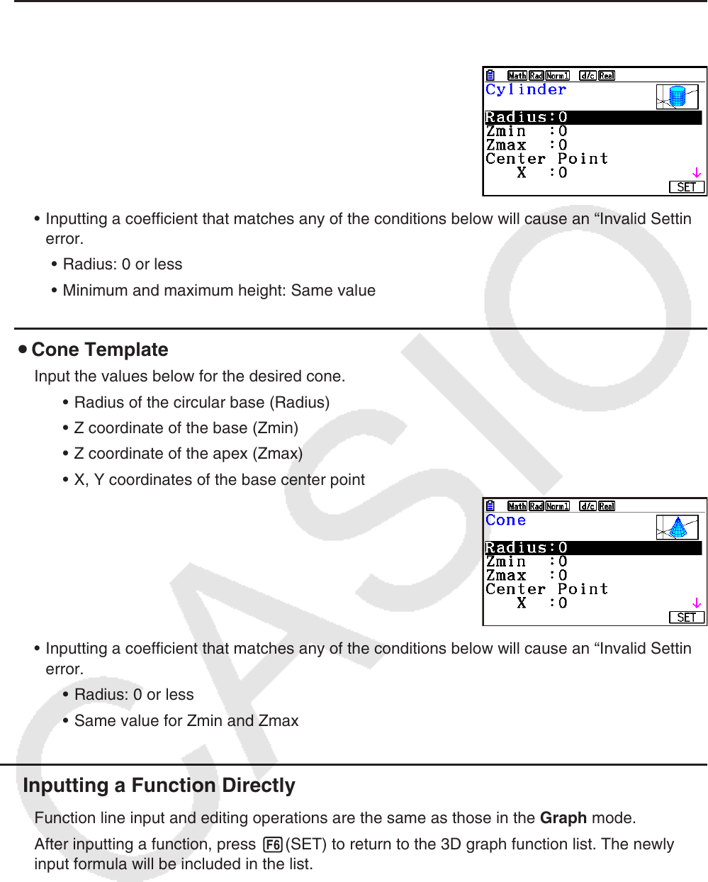 After inputting a function, press 6(SET) to return to the 3D graph function list. The newly