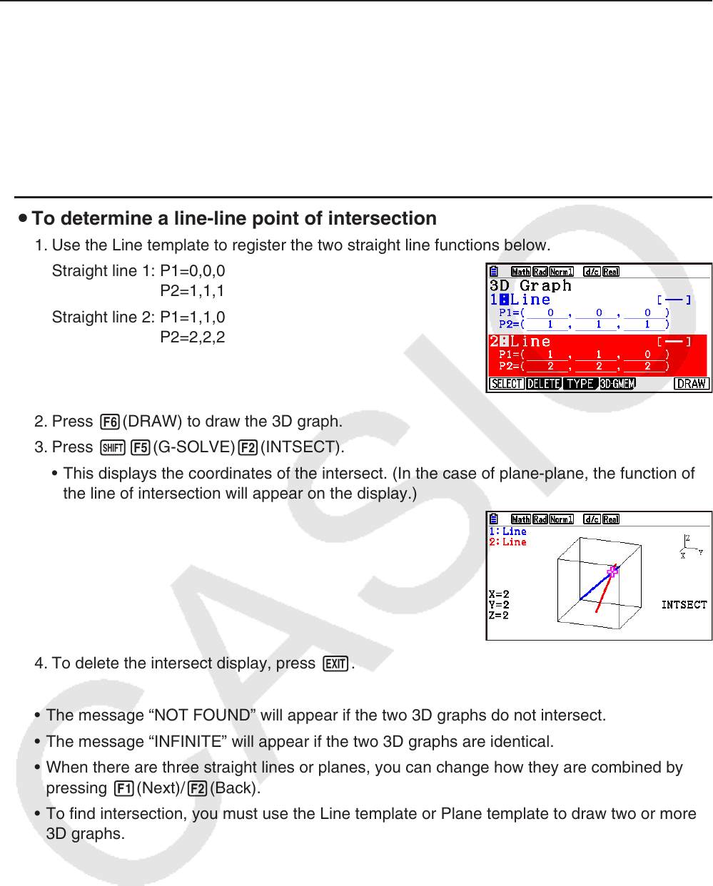 The message “NOT FOUND” will appear if the two 3D graphs do not intersect.