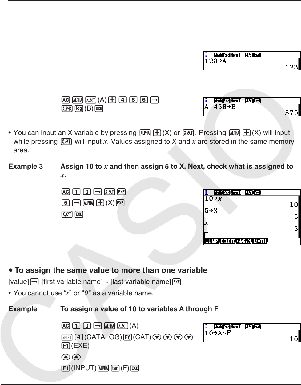 • You can input an X variable by pressing a+(X) or v. Pressing a+(X) will input X,