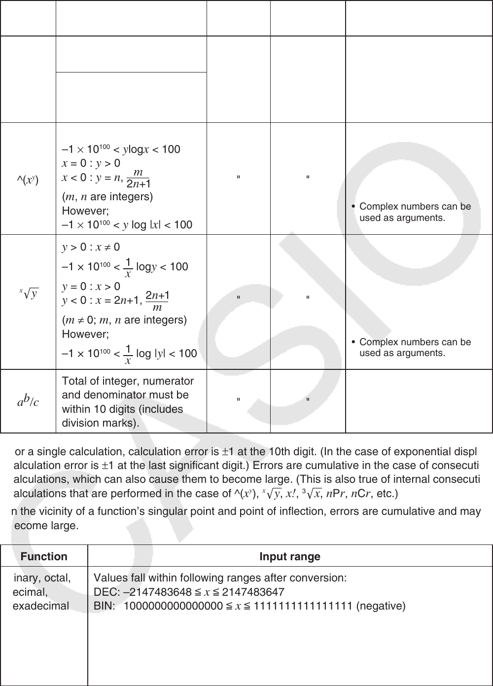 calculation error is ± 1 at the last significant digit.) Errors are cumulative in the case of consecutive