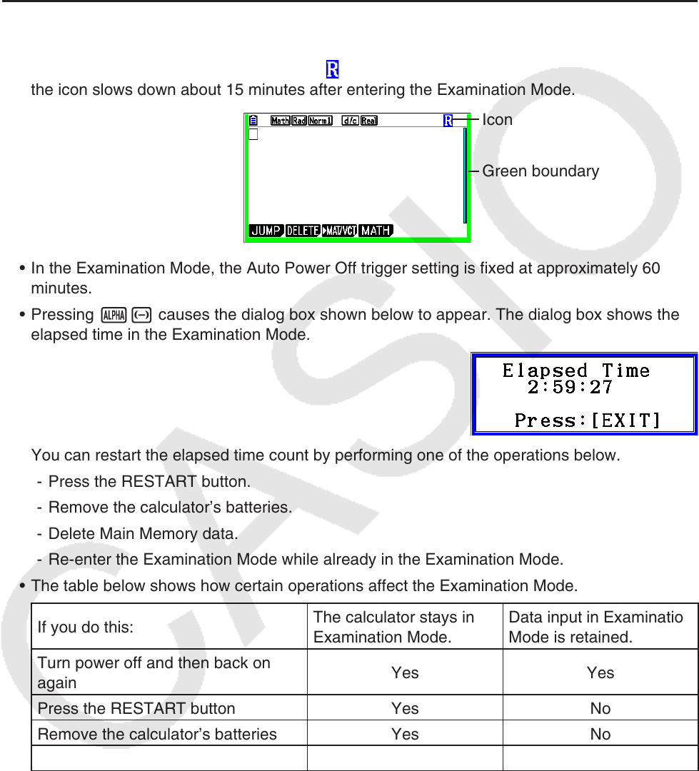 - Re-enter the Examination Mode while already in the Examination Mode.