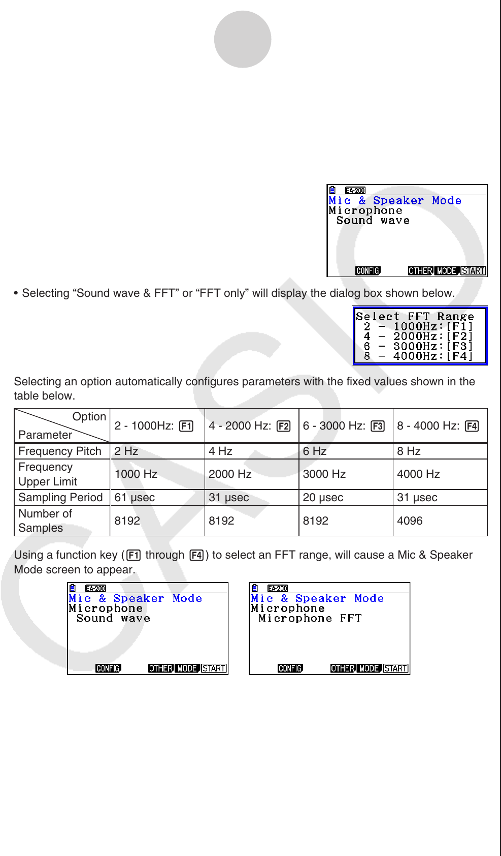 Selecting “Sound wave & FFT” or “FFT only” will display the dialog box shown below.