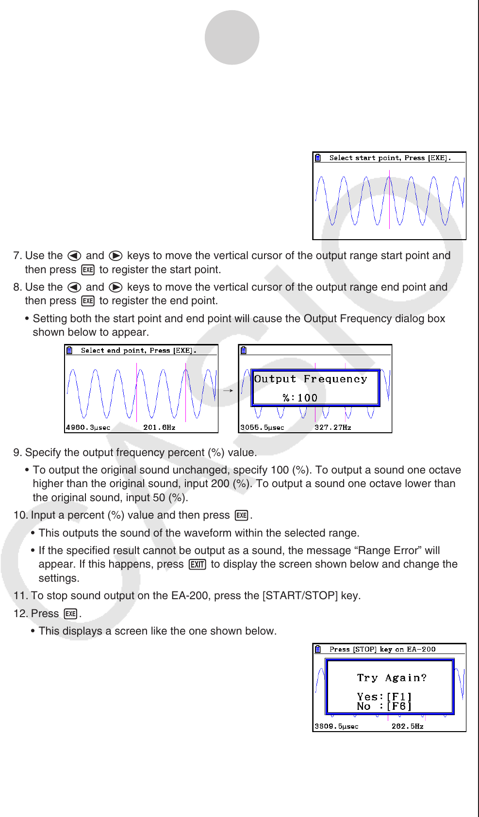 If the specified result cannot be output as a sound, the message “Range Error” will