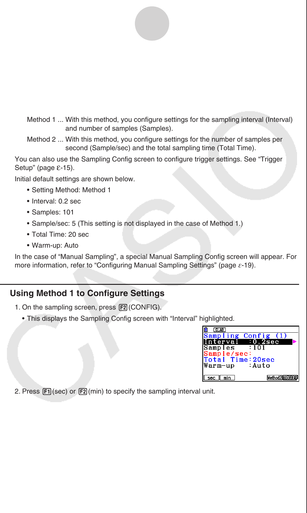 2. Press 1(sec) or 2(min) to specify the sampling interval unit.