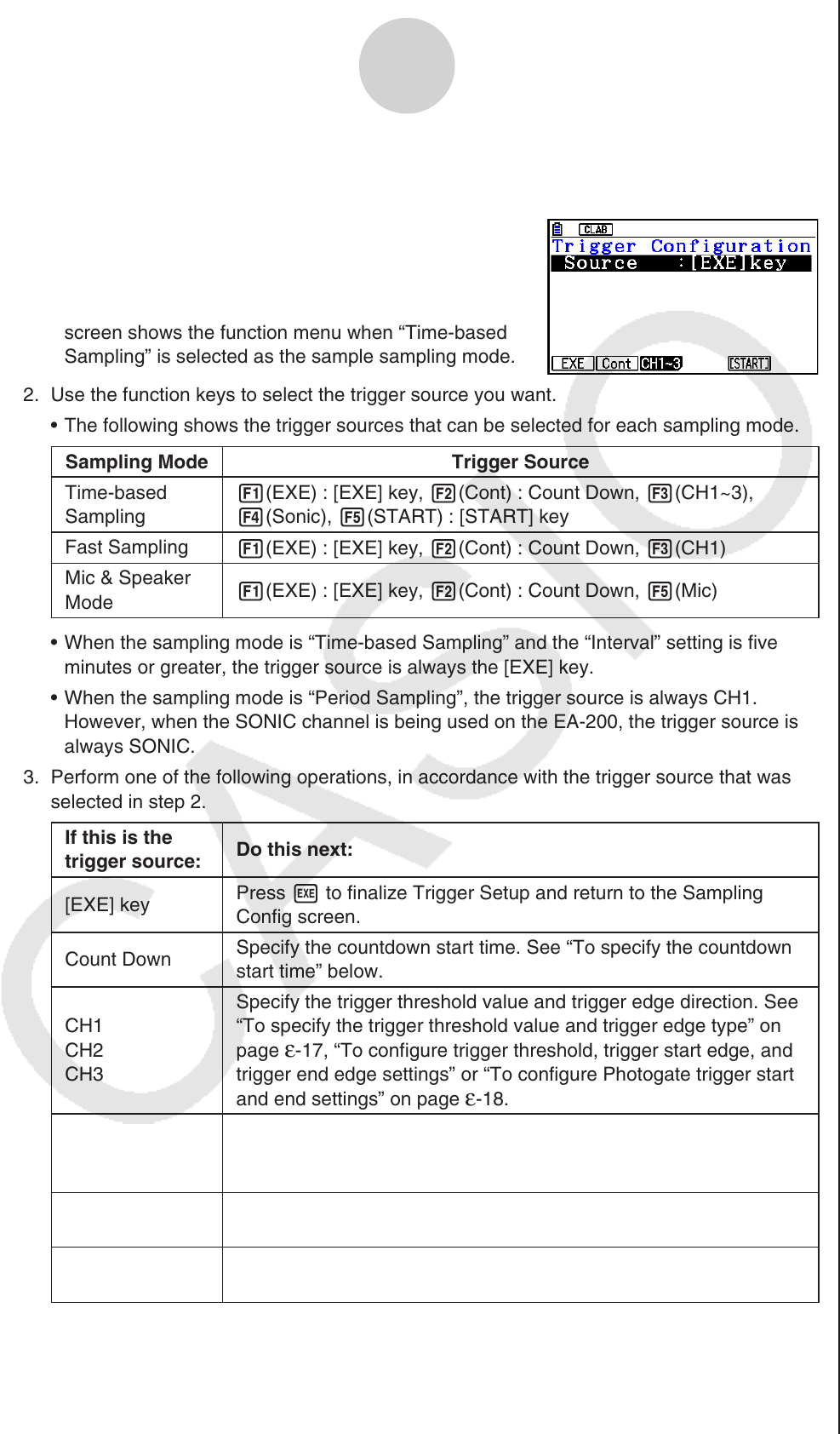 minutes or greater, the trigger source is always the [EXE] key.