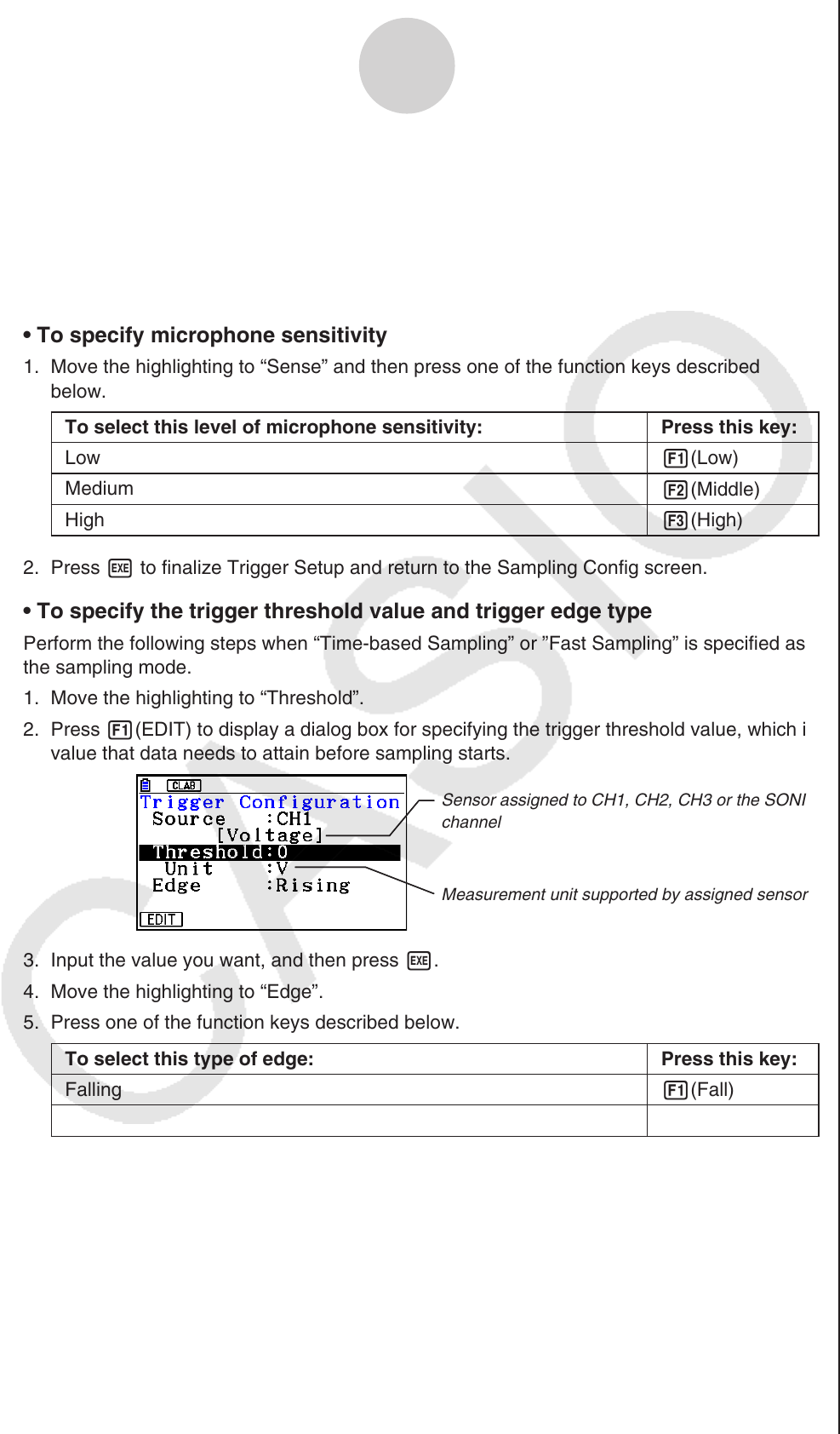 2. Press 1(EDIT) to display a dialog box for specifying the trigger threshold value, which is