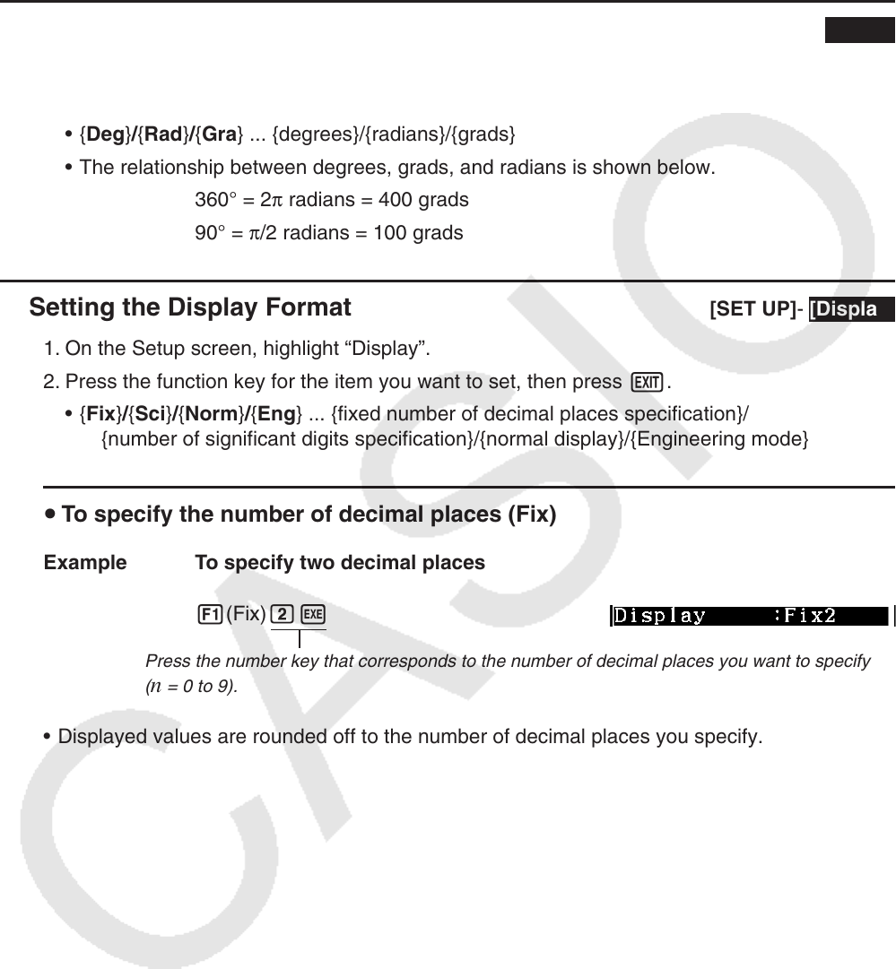 • { Fix } / { Sci } / { Norm } / { Eng } ... {fixed number of decimal places specification}/
