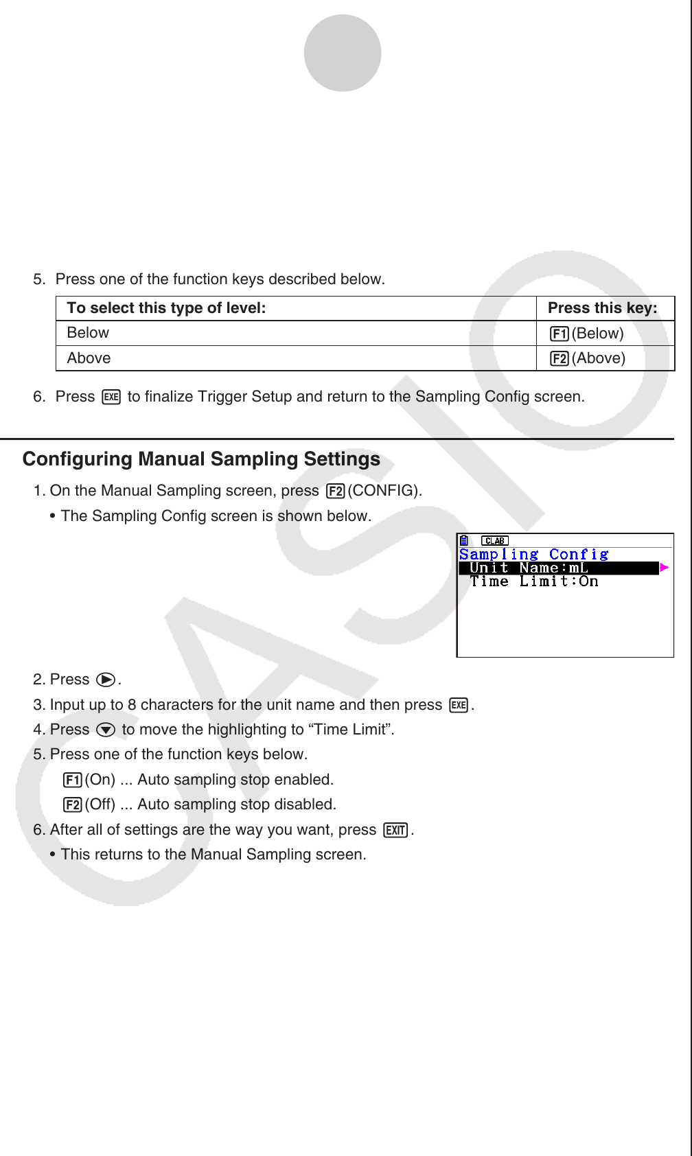 1. On the Manual Sampling screen, press 2(CONFIG).