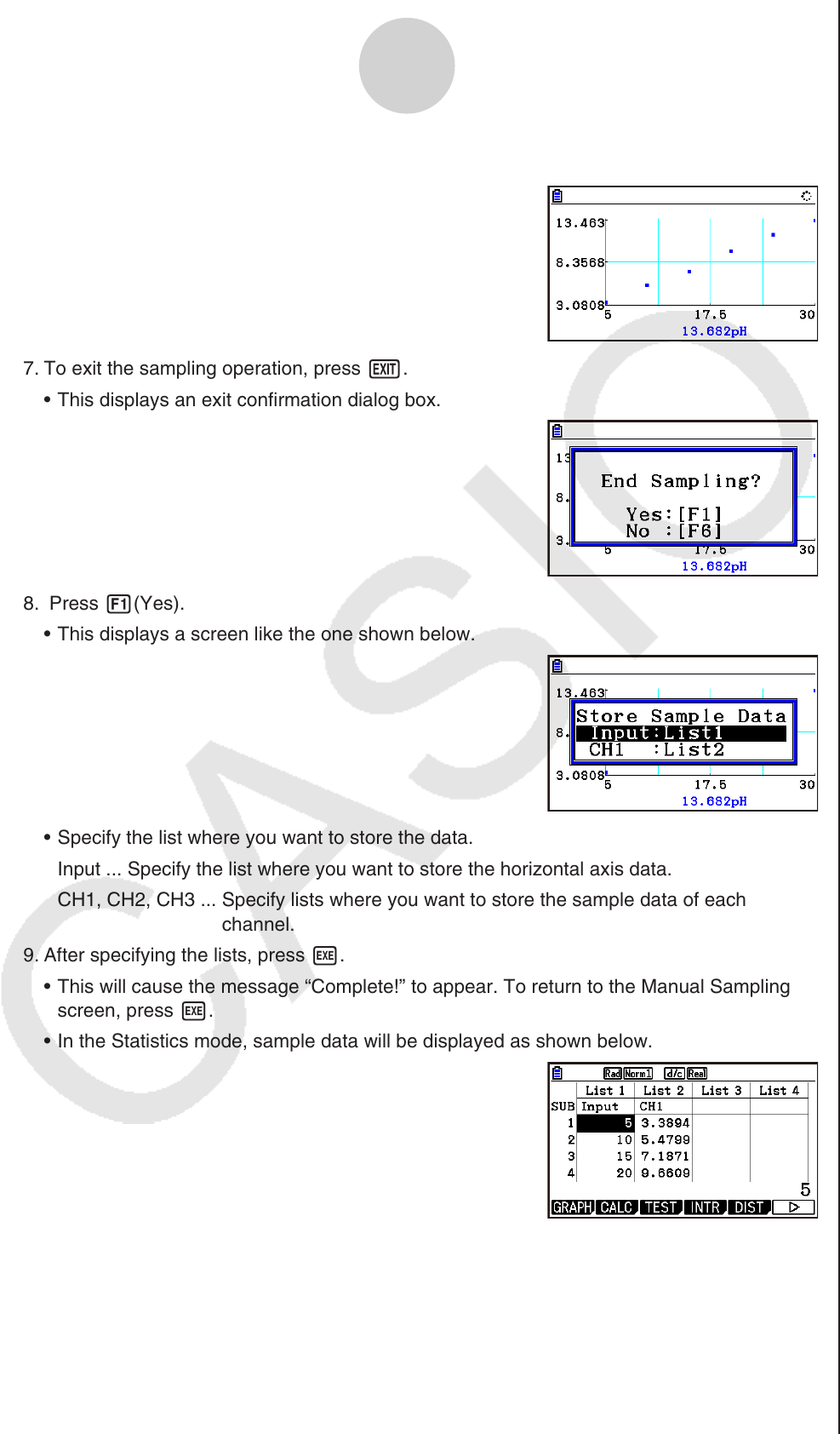 This will cause the message “Complete!” to appear. To return to the Manual Sampling