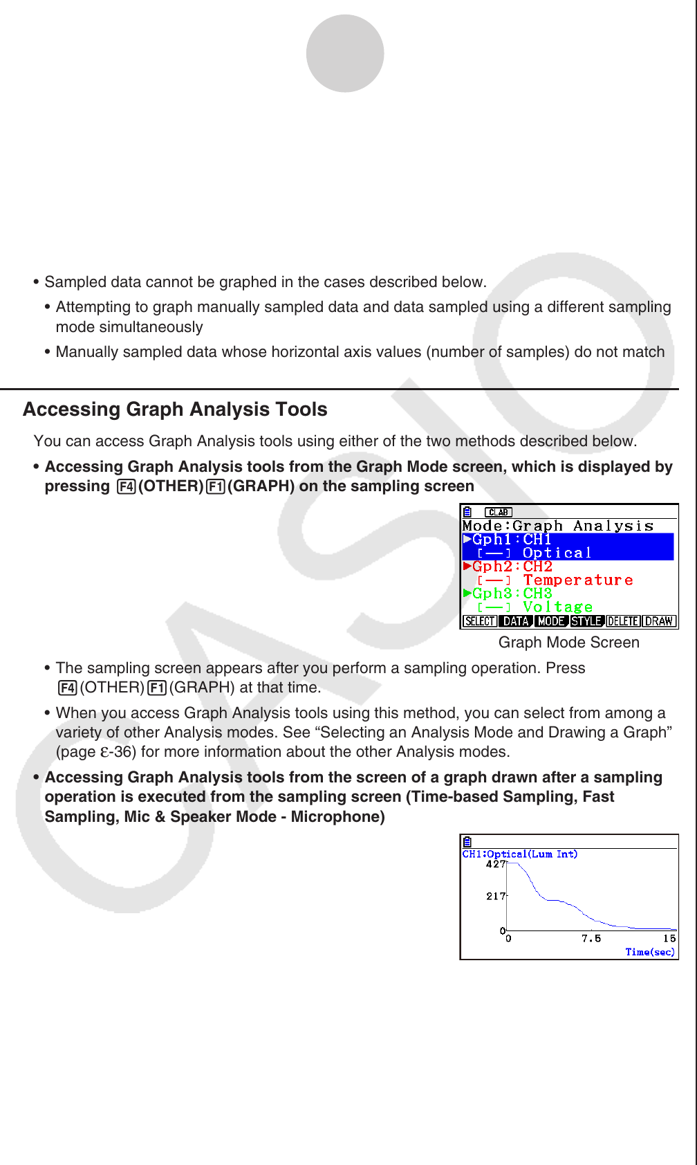 • In this case, data is graphed after the sampling operation is complete, and the calculator