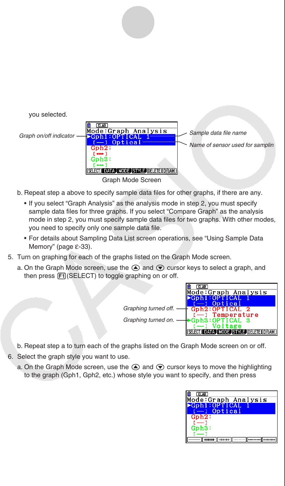 a. On the Graph Mode screen, use the f and c cursor keys to select a graph, and