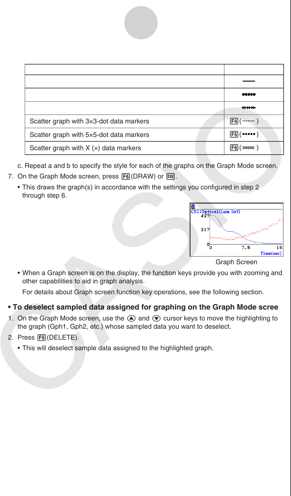• To deselect sampled data assigned for graphing on the Graph Mode screen