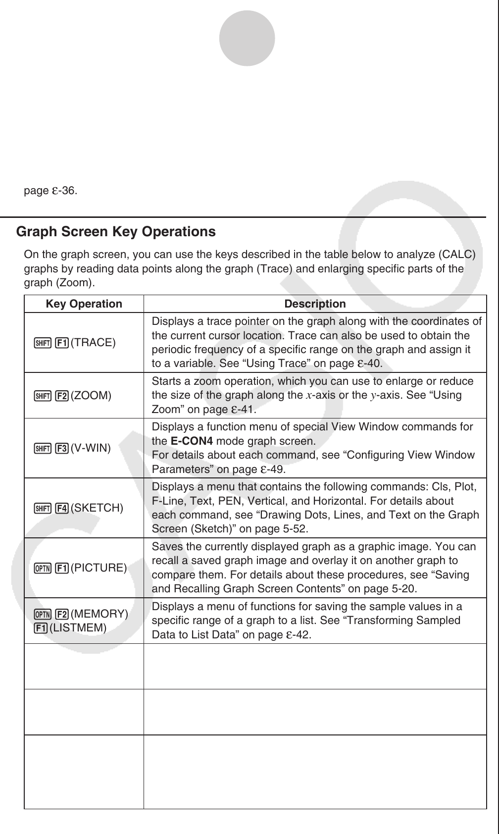 k Graph Screen Key Operations
