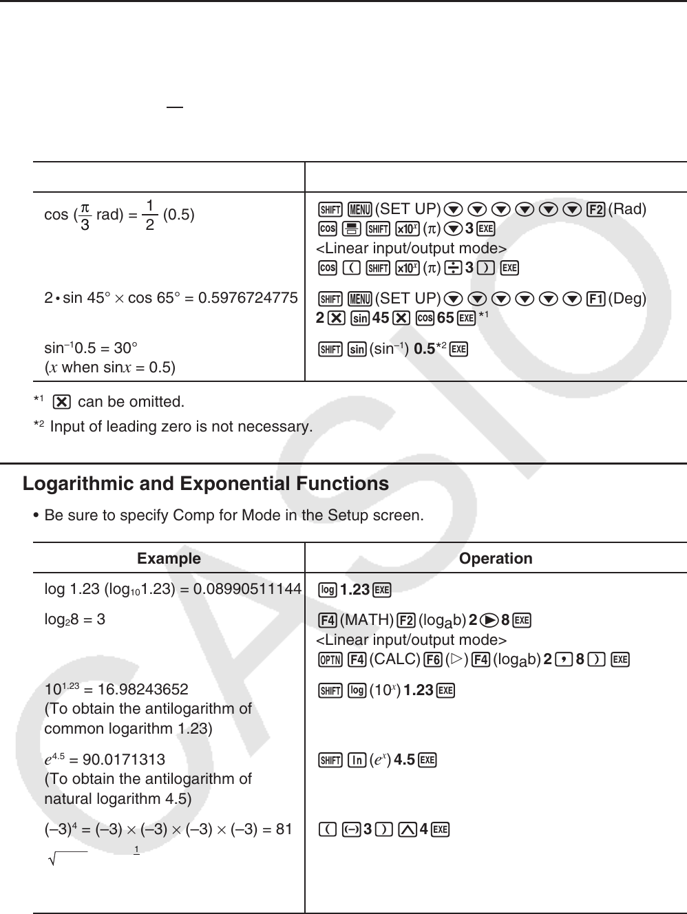 • Be sure to set the angle unit before performing trigonometric function and inverse