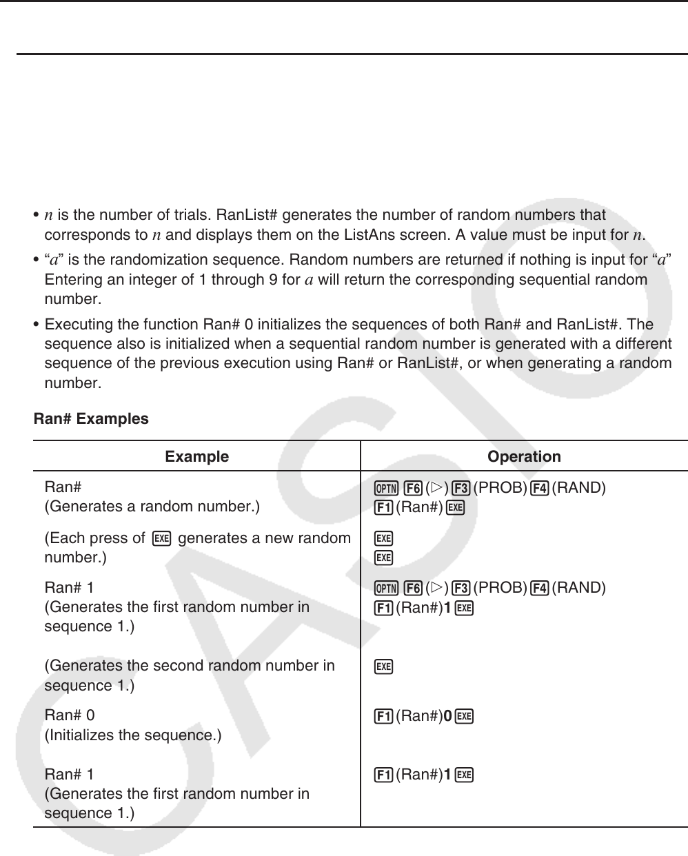 • Executing the function Ran# 0 initializes the sequences of both Ran# and RanList#. The