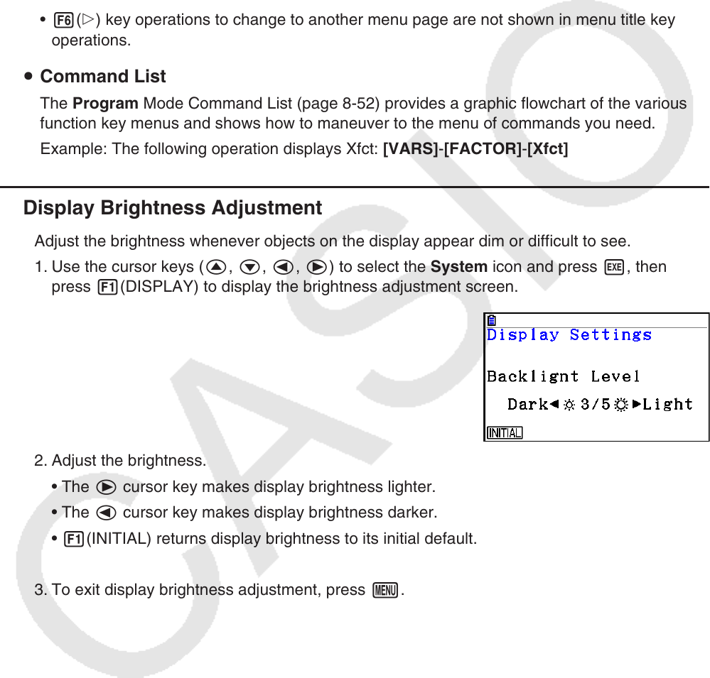 Example: The following operation displays Xfct: [VARS]-[FACTOR]-[Xfct]