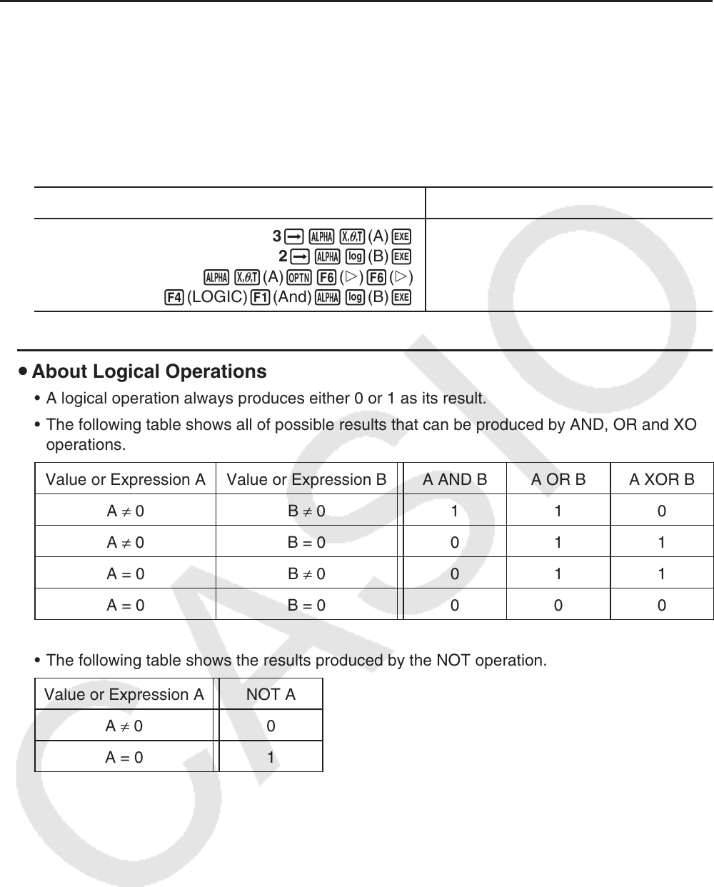 k Logical Operators (AND, OR, NOT, XOR) [OPTN]-[LOGIC]