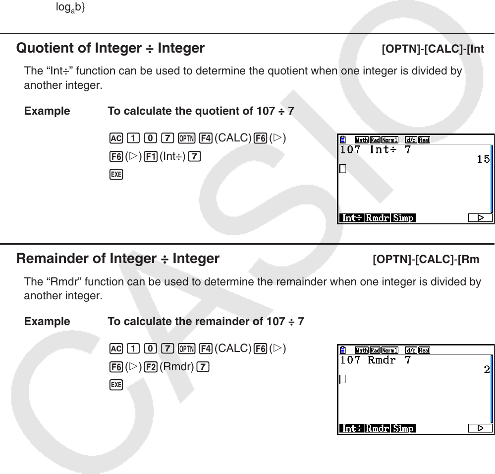 k Quotient of Integer ÷ Integer [OPTN]-[CALC]-[Int÷]