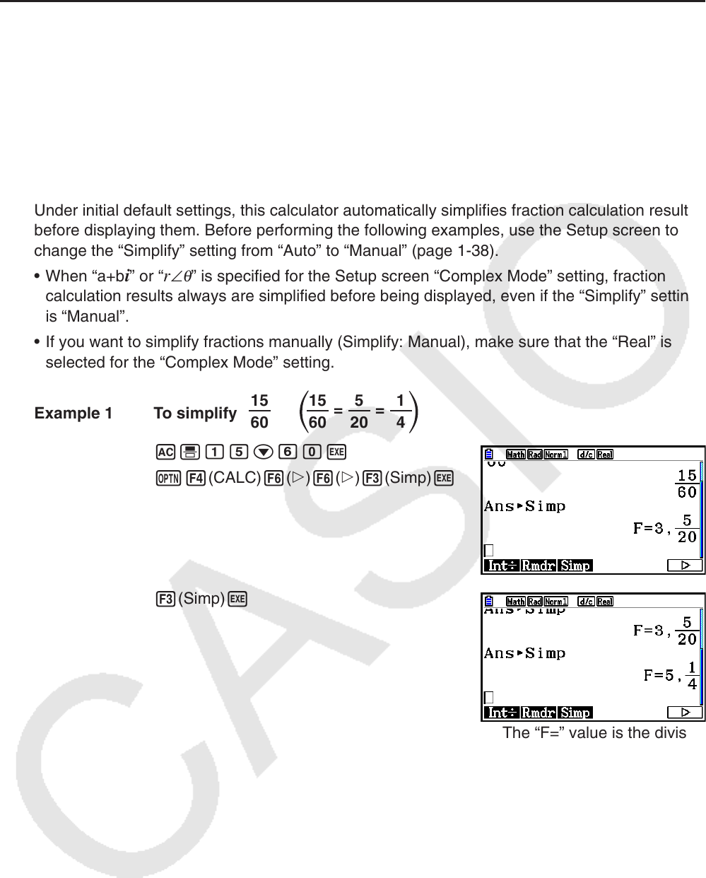• If you want to simplify fractions manually (Simplify: Manual), make sure that the “Real” is