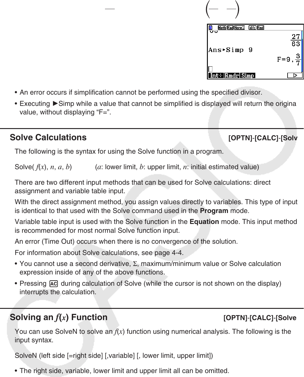 k Solve Calculations [OPTN]-[CALC]-[Solve]