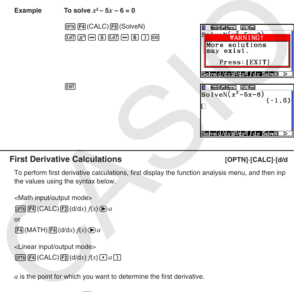 k First Derivative Calculations [OPTN]-[CALC]-[d/dx]