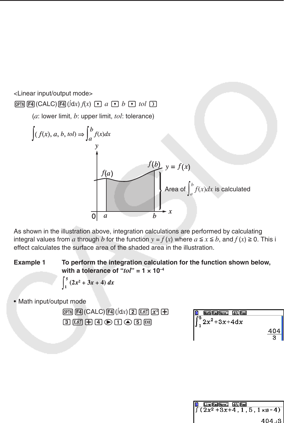 k Integration Calculations [OPTN]-[CALC]-[∫dx]