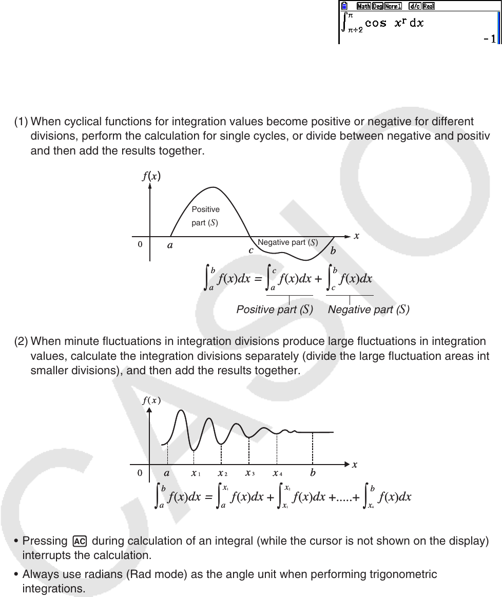 • Pressing A during calculation of an integral (while the cursor is not shown on the display)