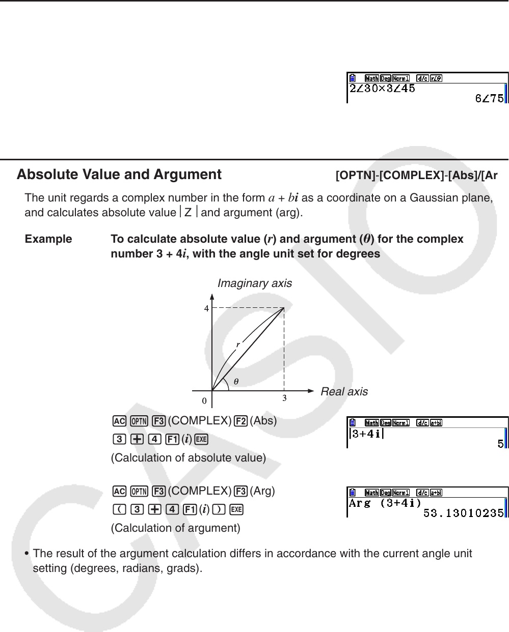 k Absolute Value and Argument [OPTN] - [COMPLEX] - [Abs]/[Arg]