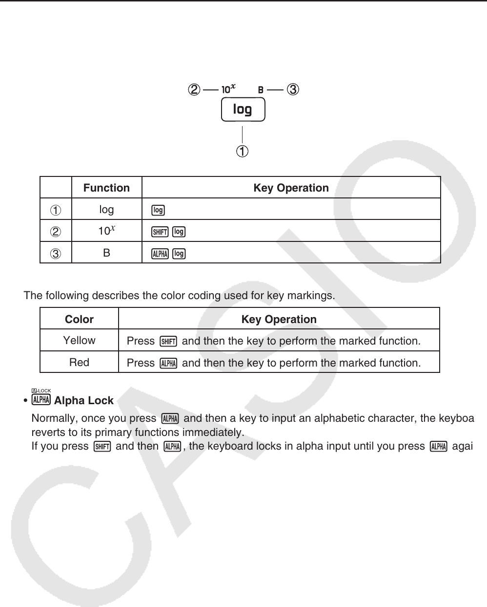 Many of the calculator’s keys are used to perform more than one function. The functions