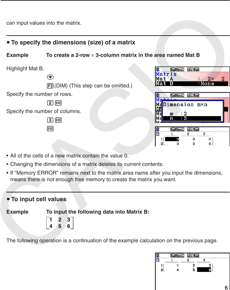 • If “Memory ERROR” remains next to the matrix area name after you input the dimensions, it