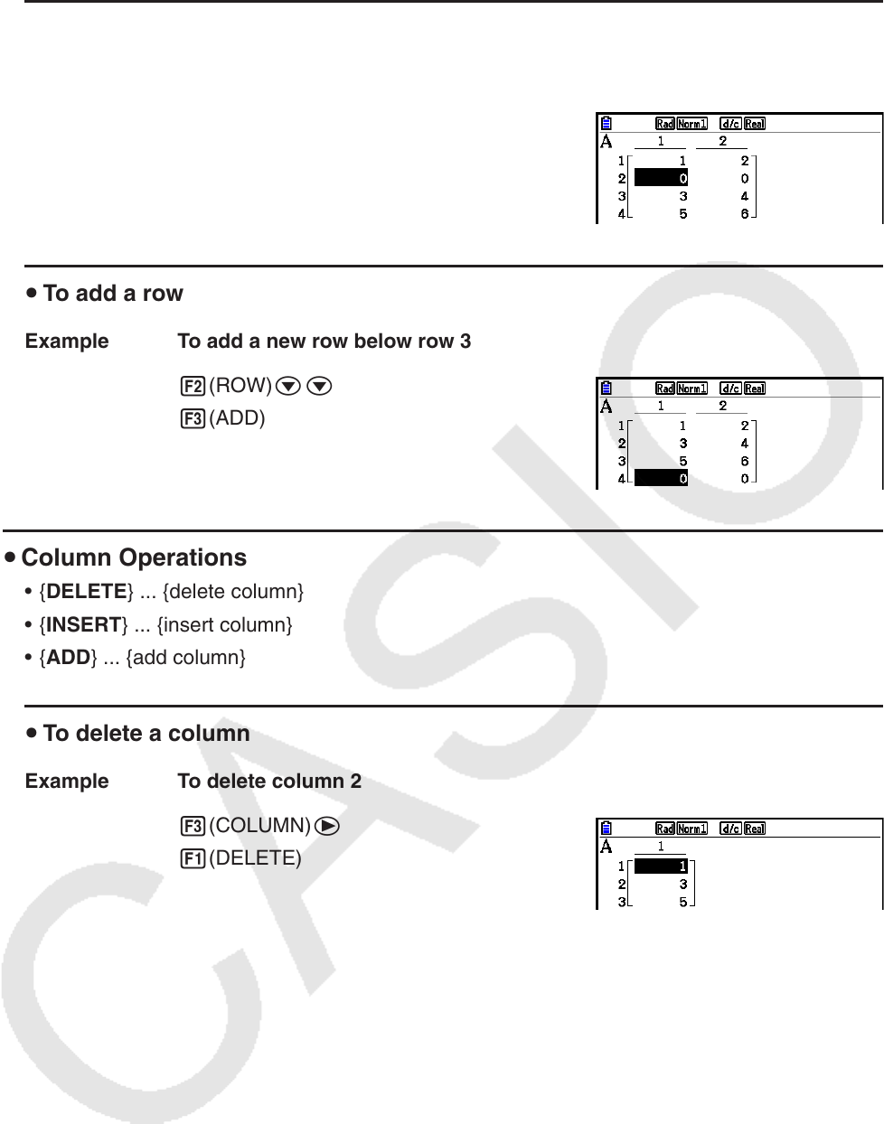 • { DELETE } ... {delete column}