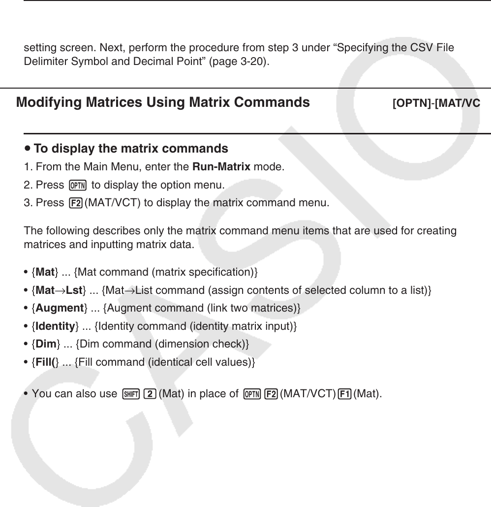 k Modifying Matrices Using Matrix Commands [OPTN] - [MAT/VCT]