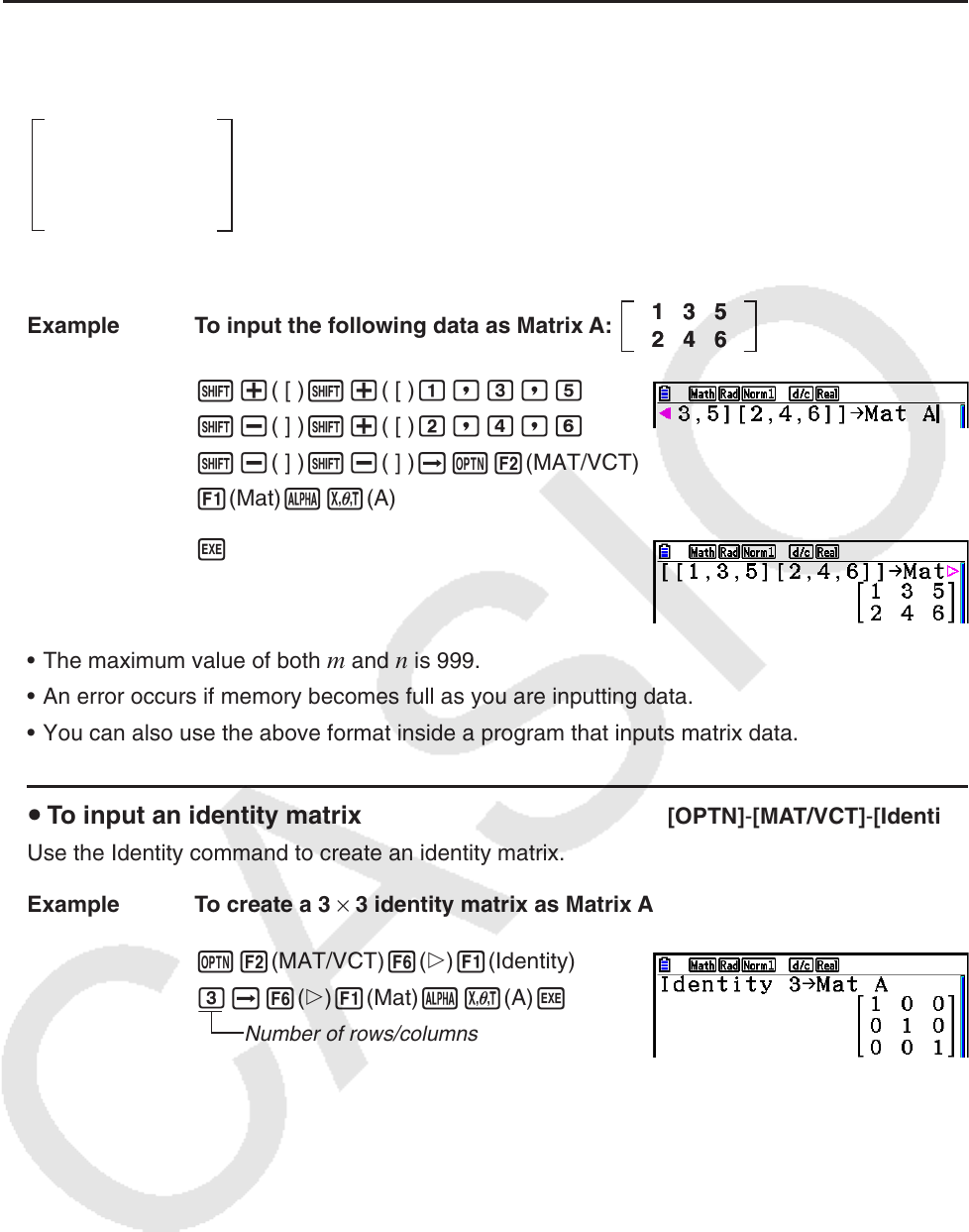 u To input an identity matrix [OPTN] - [MAT/VCT] - [Identity]