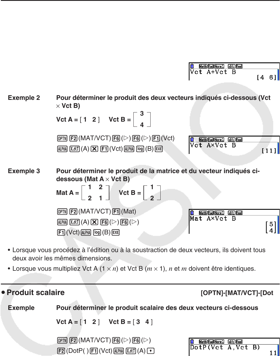 u Addition, soustraction et multiplication de vecteurs [OPTN]-[MAT/VCT]-[Vct]